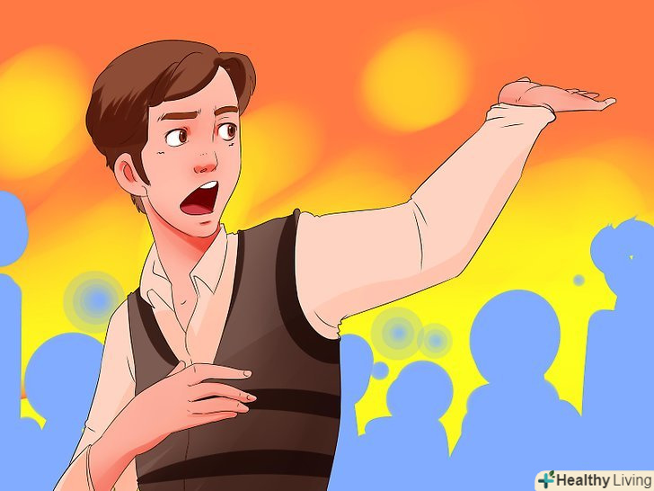 Покращіть навички публічного виступу. Якщо ви небагатослівні і не можете висловлювати свою точку зору, Вам буде складно стати впливовою людиною. Впливові люди вчаться висловлювати свою думку і озвучувати ідеї чітко і всього в декількох словах. Ви повинні бути переконливими.- Говоріть ясно і голосно, коли хочете привернути увагу. Не перекрикуйте інших, але переконайтеся, що вас чують. Важко впливати на когось, коли ви бурмочете.