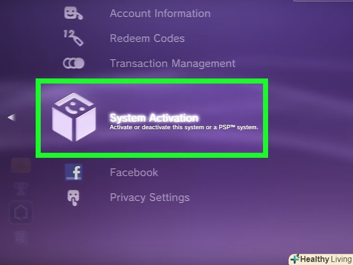 Виберіть "Активація системи«, потім виберіть»система PS3".
