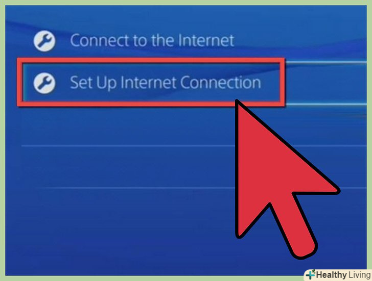 Налаштуйте інтернет. знайдіть "налаштувати інтернет з'єднання," і натисніть X. Виберіть "використовувати мережевий кабель," з використанням опції "просте". Опція "просте" дозволить вашій консолі автоматично визначити налаштування мережі.