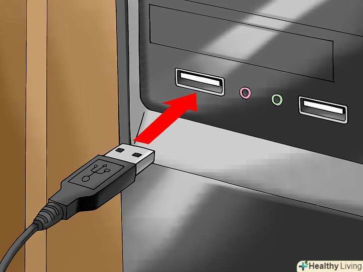 Підключіть пристрої для читання карт пам'яті до комп'ютера через USB-порт.на одному кінці цього кабелю знаходиться роз'єм для USB, на іншому – слот для карт пам'яті.- Залежно від розміру карти пам'яті, для роботи з цим пристроєм вам може знадобитися або перехідник для Memory Stick Duo, або перехідник для Memory Stick Micro (М2).[4]