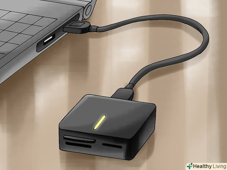 - Перевірте свій комп'ютер, так як на ньому може бути роз'єм для карти пам'яті. Якщо це так, тоді пристрій для читання карт пам'яті вам не знадобиться.[5]