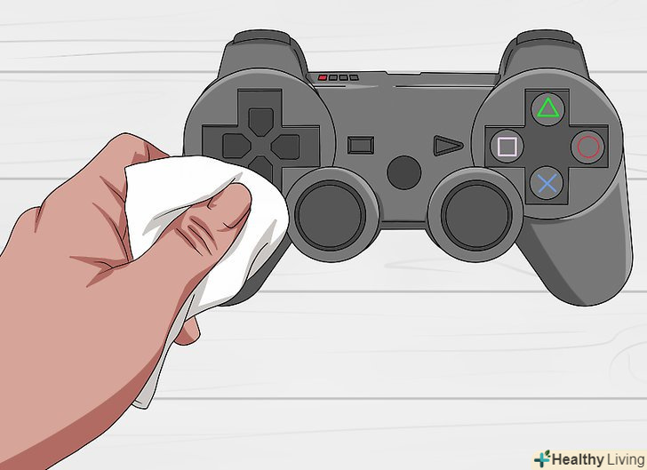 Протріть джойстики сухою ганчіркою з мікрофібри.на відміну від консолі, джойстик постійно знаходиться у вас в руках, так що з нього вам доведеться витирати не тільки пил. Спочатку протріть його тканиною з мікрофібри. Перевірте результат, перш ніж змочувати ганчірку.[11]