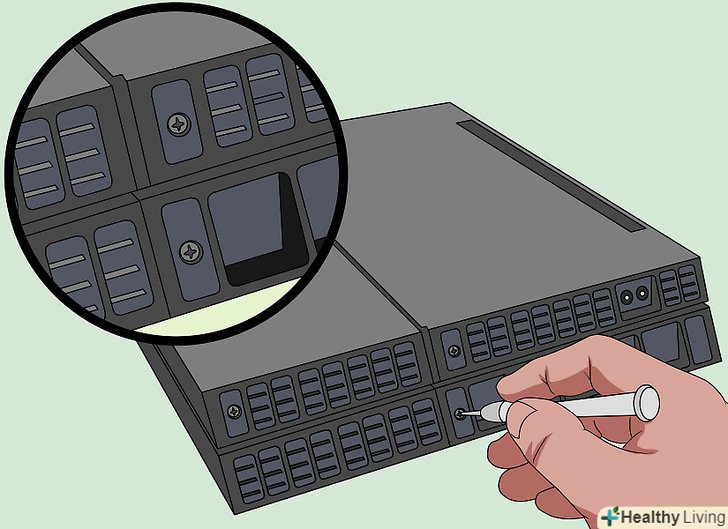 Від'єднайте всі кабелі, відкрутіть шурупи і зніміть нижню частину консолі.Від'єднайте кабель живлення та інші кабелі, щоб вони вам не заважали. Потім знайдіть чотири шурупи на задній панелі. Як мінімум два з них будуть заклеєні гарантійними пломбами, так що відклейте їх. Після цього відкрутіть всі шурупи за допомогою викрутки зірочки T8 або T9 і обережно зніміть нижню частину консолі.