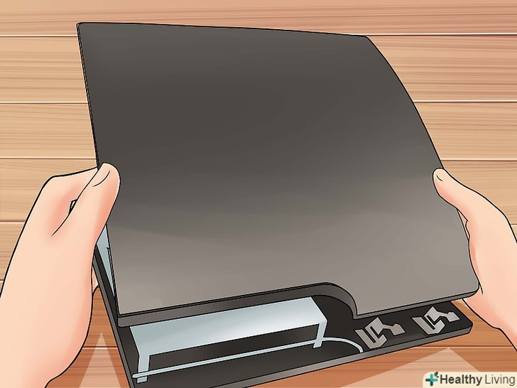 Від'єднайте PS3 від живлення.перш ніж відкривати корпус переконайтеся, що ви від'єднали кабель живлення і відеокабель, а також всі пристрої, підключені до портів USB. Так само, як і при роботі з будь-якими іншими складними електронними пристроями спочатку заземлите себе.- Для заземлення ви можете використовувати антистатичну пов'язку на зап'ясті, або доторкніться гвинтиком до робочого вимикача світла.