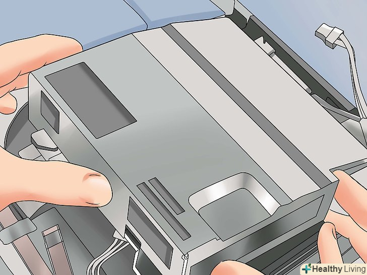 Вийміть блок живлення. Блок живлення це Срібний або чорний блок поруч з приводом Blu-ray. Зніміть п'ять гвинтів, що тримають блок живлення. Від'єднайте штекери з обох сторін блоку живлення. Витягніть блок живлення з корпусу.[1]