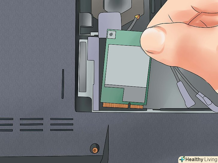 Вийміть плату бездротового зв'язку.вона знаходиться з тієї ж сторони, що і блок живлення. Плата кріпиться до корпусу чотирма гвинтами і шлейфом.