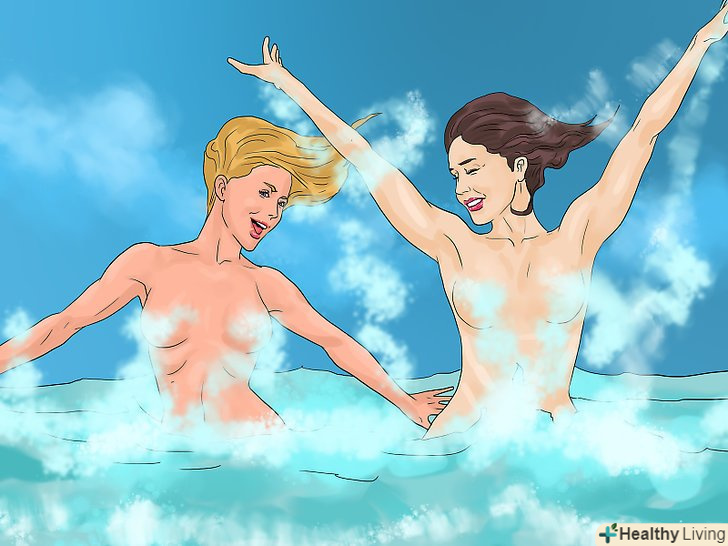 Запропонуйте вашу ідею. ви можете сказати, що завжди дуже хотіли спробувати скупатися голяка, або ж просто підійти до води і почати роздягатися. У будь-якому випадку, спробуйте надихнути людину, з якою ви розмовляли в другому пункті, приєднатися до вас. Решта людей відчують більший ентузіазм, коли побачать, що хтось до вас приєднався.- Якщо ви відчуваєте себе особливо зухвалим, ви можете виконати привертає увагу трюк. Якщо всі стрибають в басейн з містка, дочекайтеся, поки черга дійде до вас і, опинившись на містку, зніміть ваш купальний костюм. Це буде відмінне "вступ до купання голяка".