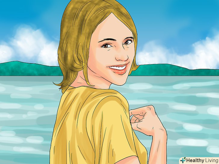 Продовжуйте роздягатися і робіть це впевнено. вам буде незручно роздягатися перед усіма, якщо ви надто сором'язливі або критичні до того, як виглядаєте. Роздягніться без коливань і не гримасуйте через якихось не ідеальних ділянок вашого тіла. Сконцентруйтеся на позитивних думках і на частинах вашого тіла, які вам дійсно подобаються. Ніхто не ідеальний, тому навчитеся цінувати те тіло, яке вам дано.- Надихніть оточуючих вас людей бути рішучими. Якщо хтось із ваших друзів вагається, допоможіть їм зрозуміти, що недоліки не важливі і що він або вона виглядає добре. Невпевненість в собі є одним з головних психологічних бар'єрів до купання голяка.