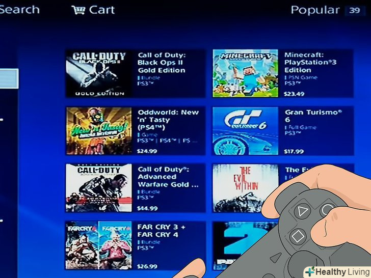 Перегортайте список ігор за допомогою стрілок навігації на контролері або введіть ключове слово в пошукове поле, щоб знайти конкретну гру.- Відкрийте розділ «коди погашення» на лівій бічній панелі PlayStation Store, якщо ви купили гру в іншому місці і хочете завантажити її на консоль. PS3 проведе вас через процес введення коду і скачування гри.