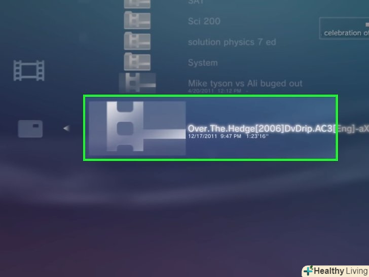 Відтворіть фільм. як правило, це відбувається автоматично; якщо ні, перейдіть в розділ «Відео» меню XMB, виберіть потрібний фільм і натисніть кнопку «X».