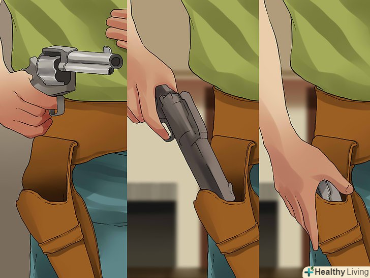 Навчіться ефективно і швидко вихоплювати пістолет . Більшість перестрілок несподівані, тому швидке вихоплення пістолета-це навик, який повинен бути відточений до досконалості. Далі наведена техніка вихоплення. Вона має п'ять кроків, і кожен з них невипадковий. Якщо ви не на стрільбищі і не можете стріляти по цілях (дотримуючись всіх правил стрільбища), це тренування слід проводити з незарядженим зброєю. Якщо після вихоплення пістолета ви можете стріляти по цілі, то це тренування може стати дуже корисною. Спробуйте засікти час від вихоплення до першого вдалого попадання по цілі.