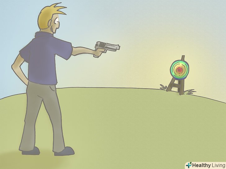 Практикуйтеся на такій відстані до тих пір, поки ви не зможете незмінно потрапляти в мішень діаметром приблизно 50 см. відсуньте мішень на приблизно 10 метрів. Відпрацюйте цикл знову. Зберігайте постійне дихання. Якщо ваш приціл зрушений, придбайте новий для коригування або віддайте на налагодження Старий. Відкритий приціл - мій улюблений. Але деякі люди вважають за краще інші види прицілу. Настроювані Приціли також дозволяють з легкістю змінювати нульовий рівень вашої зброї в будь-який момент.- Після того, як ви пересунули мішень далі один або два рази, ви, врешті-решт, виявите, що здатні стабільно потрапляти в мішень діаметром 50 см з більш і більш далеких відстаней.