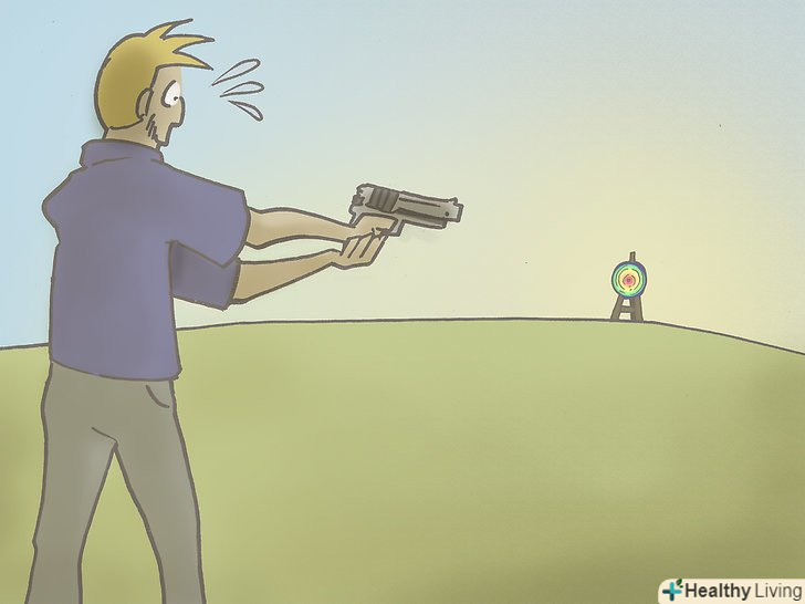 Після пострілу перевірте, куди потрапила куля (високо, низько, правіше, лівіше і інші комбінації). з практикою, ви зможете визначити причину вашого промаху: неточний приціл, ваша рука здригнулася, і/або вам не вистачило часу або причиною стало так зване очікування пострілу.- Якщо постріл потрапляє лівіше мети, для правші це означає, що ви сильно тиснете на весь пістолет, а не тільки на спусковий гачок.