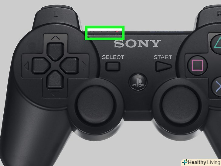 - Щоб перевірити поточний заряд батареї джойстика, затисніть кнопку з логотипом PlayStation хоча б на дві секунди. Поточний заряд батареї ненадовго відобразиться на телевізорі або екрані комп'ютера.