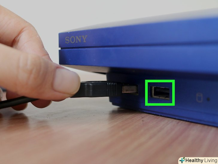 Вставте USB-роз'єм кабелю в консоль. він повинен увійти в один з вузьких, прямокутних портів на передній панелі консолі.- Якщо кабель не вставляється в USB-порт, переверніть його на 180 градусів і спробуйте знову.