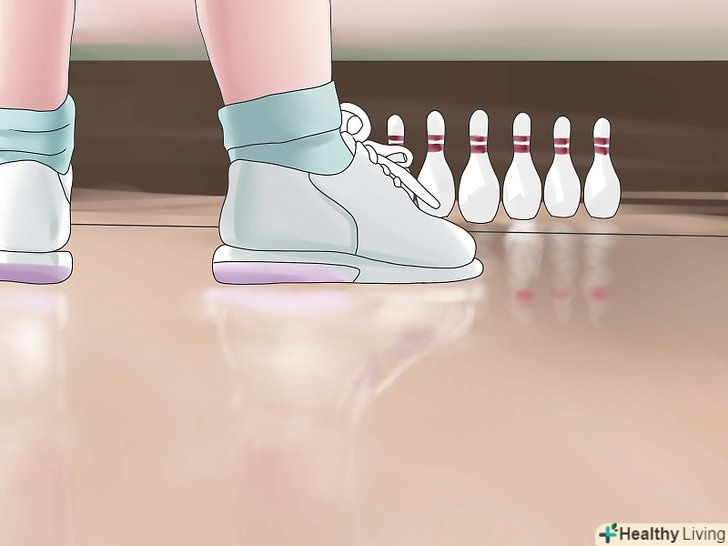 Чітко уявіть собі лінію, по якій ви будете кидати кулю уздовж доріжки. вона може сильно відрізнятися в залежності від доріжок, на яких ви граєте, але давайте зосередимося на типовому стані доріжки: велика частина масла на внутрішній частині доріжки, для використання залишається приблизно 8-10 відносно сухих дощок. Ці дошки можуть бути вам одночасно і другом і ворогом. Залежно від кількості масла і від того як куля буде вести себе на доріжках різного стану, ви захочете розташувати ноги трохи лівіше доріжки. Як тільки ви познайомитеся ближче з хуком, ви зможете, при необхідності скорегувати стійку.- Починати підхід, розташувавши праву ногу на центральній точці, - це хороший спосіб перевірити, наскільки доріжка придатна для закрученого кидка. Дуже важливо тримати ноги разом, щоб зберегти рівновагу.