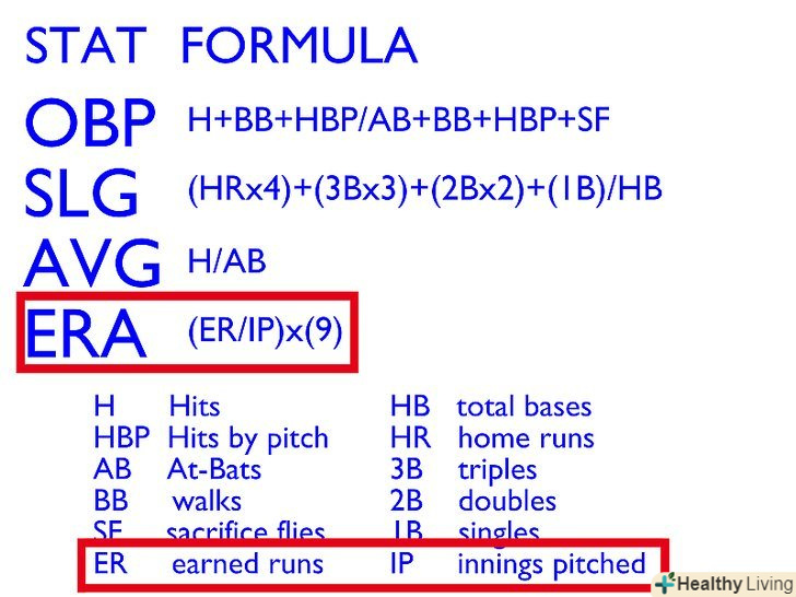 - ERA: середня величина ернд ран, або ERA показує скільки ранів пропускає пітчер в середньому за 9 інінгів. Обчислити ERA можна наступним способом: розділіть ернд рани пітчерів подачі, і помножте це приватне на 9.