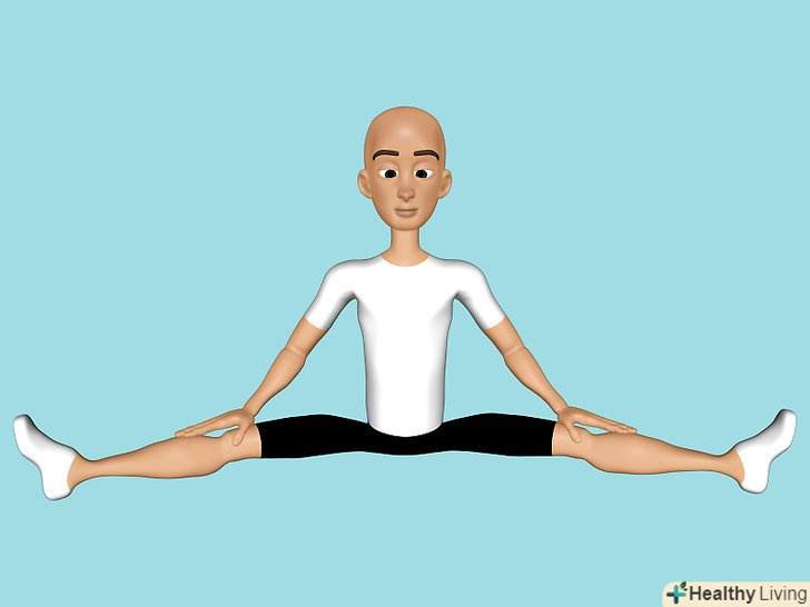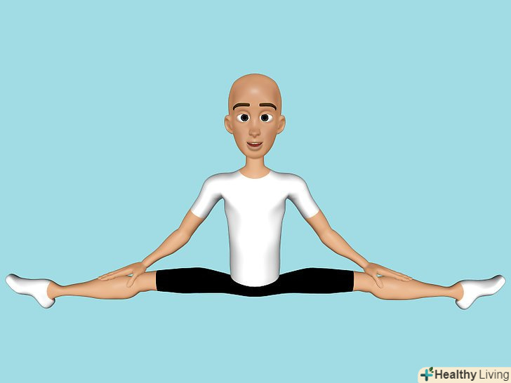 Опустіться якомога нижче в процесі спроби сісти на шпагат. зафіксуйте своє тіло в найбільш близькій до підлоги позиції протягом однієї хвилини (можливо, ви захочете спробувати протриматися і довше).- Як тільки ви досягли межі витрати ніг в сторони, - сядьте на сідниці, зберігаючи ноги в максимально широкому один від одного положенні. Тепер, спробуйте дотягнутися руками спочатку до однієї стопи, а потім до іншої. Після цього потягніться руками вперед якнайдалі, зберігаючи ноги в розкритому в сторони положенні. Повторіть вправу.