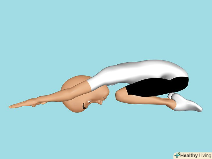 Сядьте сідницями на свої п'яти. спробуйте торкнутися носом своїх колін. Витягніть свої руки вперед, відчуваючи розтяжку м'язів спини.- Дуже важливо розслабитися при розтяжці. Деякі майстри йоги кажуть, що розтяжка знаходиться у вашій голові, - звідки виходить голос про те, що ви не можете нічого зробити. Так що спробуйте розслабитися, тим самим приглушивши цей настирливий внутрішній голос.