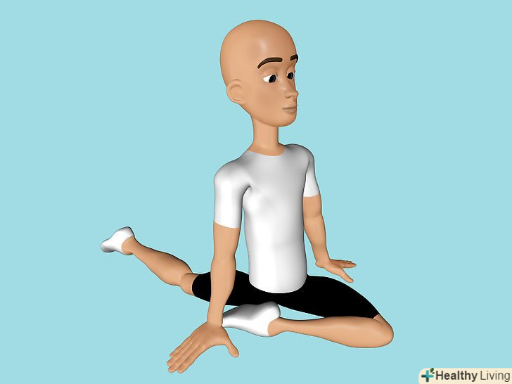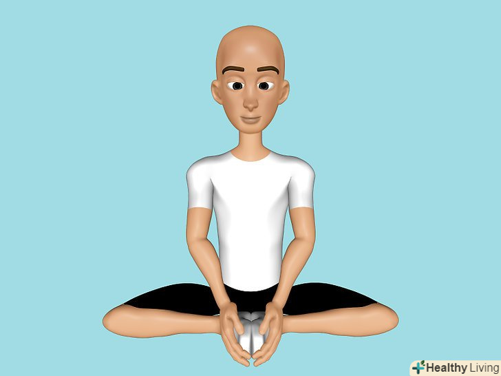 Виконайте вправу «метелик». розташуйте свої стопи попереду себе і зімкніть їх руками близько пахової області так, що коліна виявляться, образно кажучи, кінчиками крил метелика. Швидше за все, ваші коліна не будуть стосуватися підлоги, відповідно вашим завданням буде торкнутися колінами землі, не виходячи з пози «метелика». Ви можете вдатися до допомоги ліктів для створення додаткового тиску на коліна в напрямку підлоги.