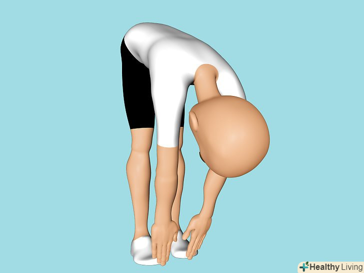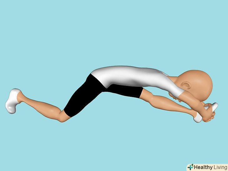 Дотягніться рукам до ніг. Ви можете виконати дану вправу як стоячи, так і сидячи. Якщо вам коли-небудь доводилося здавати норматив з фізкультури, при якому вам потрібно було сісти, випрямити ноги вперед і потягнутися руками в напрямку стоп і зафіксувати досягнуту позицію, то це воно і є, просто повторіть, як то кажуть, як в школі вчили.- Якщо майстерність дозволяє з легкістю дотягнутися до стоп, то спробуйте щось по складніше, наприклад, влаштуйте змагання з самим собою на те, як далеко ви можете дотягнутися своїми пальцями, а потім побийте свій же рекорд. Немає межі досконалості.
