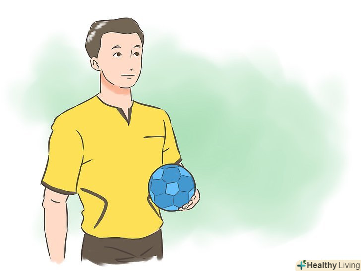 - Ознайомтеся з м'ячем. Традиційно в гандболі використовується Шкіряний м'яч з 32-секцій. Для жіночого гандболу ширина м'яча-54-56 см, а для чоловічого – 58-60 см, і він трохи важчий, ніж жіночий.