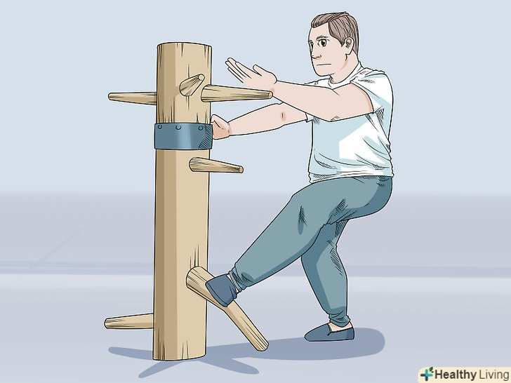 Освойте Мук Ян Чонг. Мук Ян Чонг (або «дерев'яний манекен») — це вдосконалена форма, щоб практикуватися на нерухомому супернику (дерев'яному манекені). Це допоможе вам визначити і зрозуміти, як рухи рук і ніг контактують з противником.- Оскільки манекен нерухомий, корективи в форму слід вносити відповідно до тренажером.