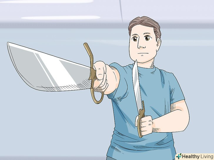 Освойте Бат Чам Дао. Бат Чам Дао (»вісім ріжучих мечів "або» ножі-метелики") — це найбільш просунута форма, в якій використовуються в якості зброї короткі мечі. Формі Бат Чам Дао навчають не всіх, хто може досягти цього рівня, а тільки обраних. Форма зосереджена в першу чергу на точності, техніці і позиції. Через ножів руху рук і ніг трохи відрізняються від інших форм. [12]