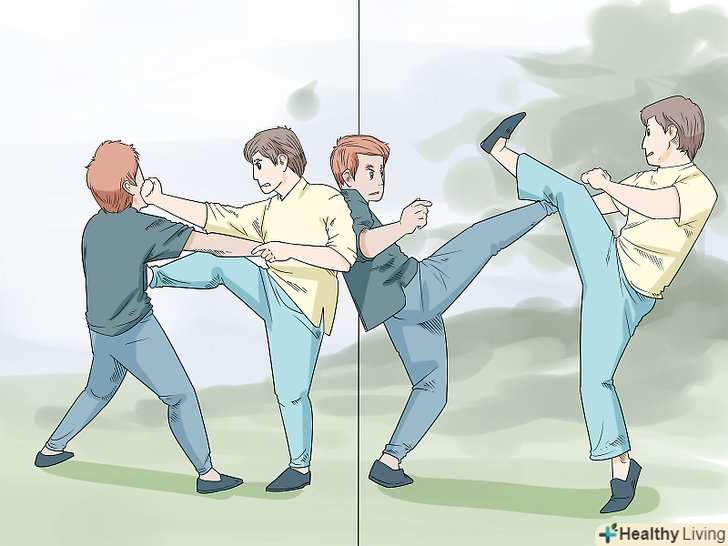 Освойте Біу Джі. Біу Джі (пронизують або стріляють пальці) зосереджений на застосуванні сили на дуже коротких дистанціях. Учні також дізнаються про додаткові техніки, наприклад, як відновити центральну лінію після падіння або виробленого захоплення. [11] у кожному з трьох розділів Біу Джі, щоб вийти з невигідного становища, ви будете використовувати комбінації рухів рук і ніг перших двох форм. Це допоможе вам зайняти наступальну позицію, щоб знешкодити противника, використовуючи силу на близькій відстані.