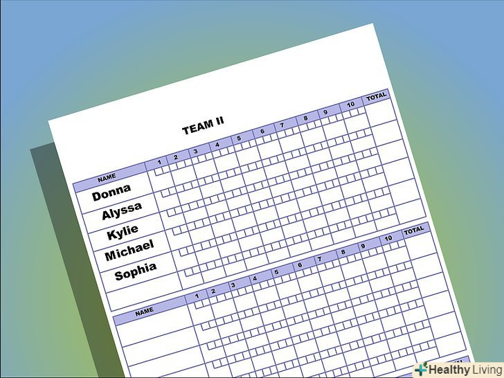 Визначте додаткові позначення. Вам з друзями можливо буде потрібно визначити, як ви будете відзначати в таблиці деякі ситуації, які іноді не вказані в правилах.- "З" або "Ф" можуть позначати заступ (або фол) – це коли гравець заступає за лінію початку доріжки, і за що він отримує нуль очок.