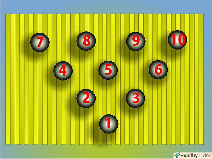 Вивчіть основні правила гри. Гра в боулінг складається з 10 фреймів (Frame). За кожен фрейм гравцеві дозволяється зробити два кидки, щоб збити всі 10 кеглів.- Якщо гравцеві знадобилося 2 кулі, щоб збити всі 10 кеглів на якомусь фреймі, то гравцеві присуджується СПЕА (Spare). Наприклад, гравець може збити 7 кеглів з першого кидка і 3 з другого.