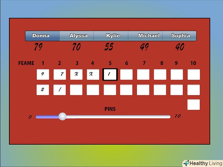 Відкритий кадр. підраховуючи відкритий кадр, вам потрібно просто скласти число кеглів, збитих після першого кидка, з числом кеглів, збитих після другого. Це буде загальне очко за цей фрейм.- В боулінгу окуляри вважаються по наростаючій. Новий рахунок додається до попереднього і записується в квадрат кожного фрейма. Наприклад, якщо на першому фреймі гравець збиває 3 кеглі після першого кидка і 2 кеглі після другого, то в квадраті першого фрейма записують цифру 5. Якщо гравець збиває в цілому 7 кеглів на другому фреймі, то в квадраті другого фрейму пишуть цифру 12.