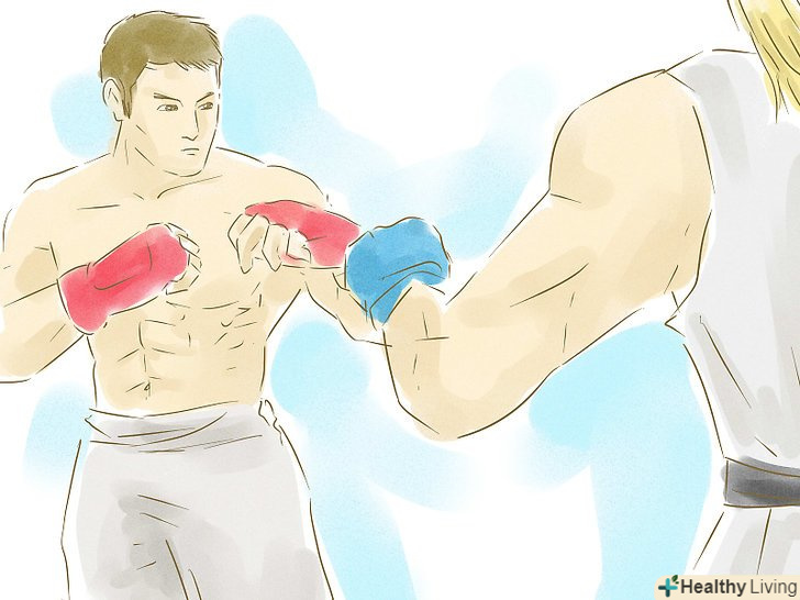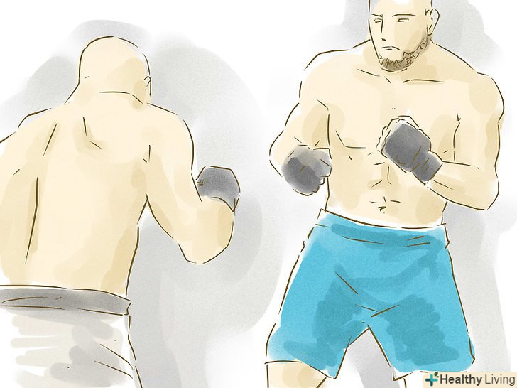 Тримайте руки піднятими в атакуючій формі і будьте готові відскочити і заблокувати удар.