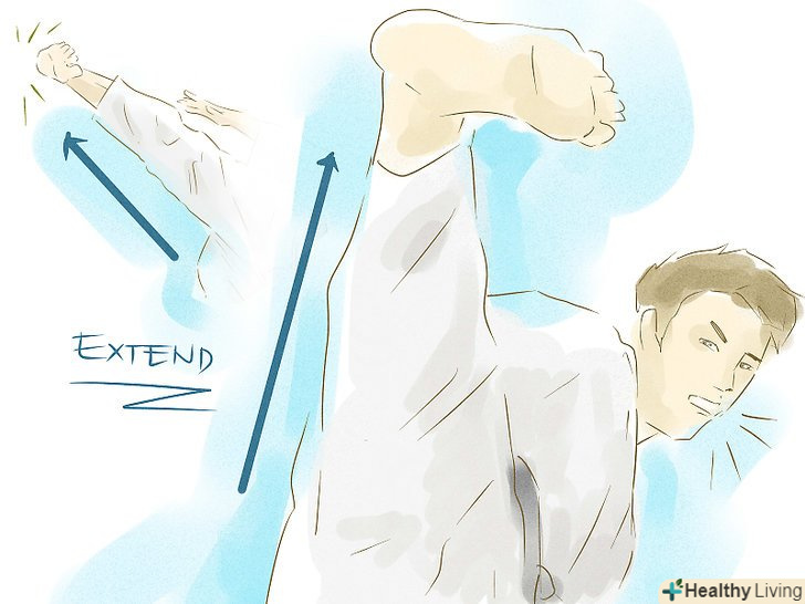 Поверніть стегна в протилежному напрямку (наприклад, якщо ви наносите удар правою ногою, поверніть стегна вліво). дотримуватися цього правила не обов'язково, але пам'ятати про нього варто.
