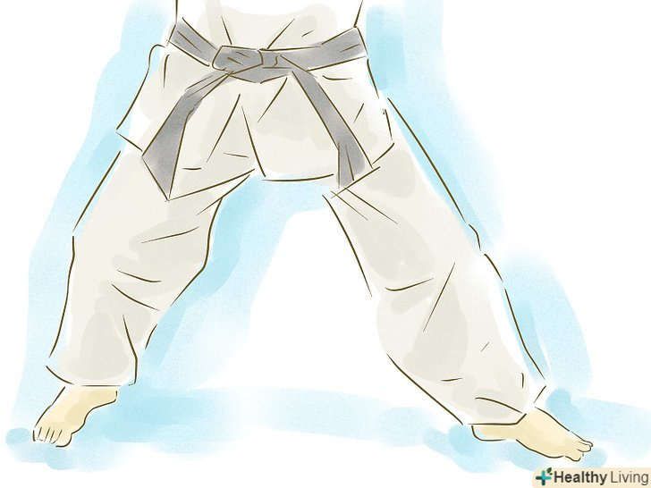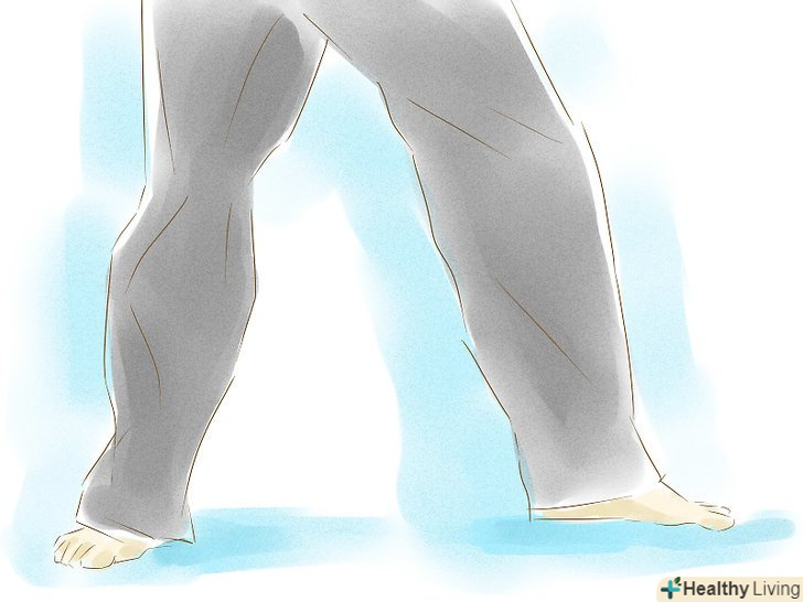 Прийміть правильну стійку. для початку розташуйте ваші ступні на відстані одного плеча одне від іншого так, щоб одна ступня була перед іншою, а пальці ноги знаходилися під кутом 45 градусів.- Станьте рівно і збалансуйте масу тіла на подушечках стоп.