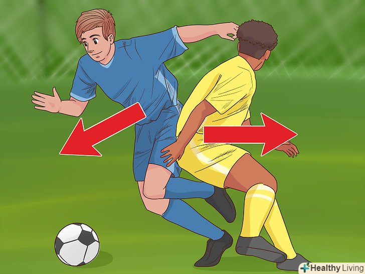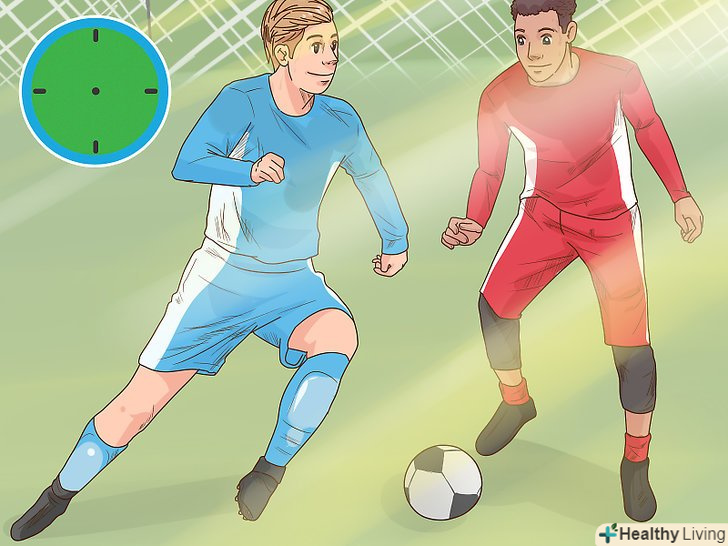 Визначайте оптимальні зони. не опускаючи очі, визначте найбільш оптимальний напрямок з найбільшою кількістю вільного простору для маневру навколо захисника. Стегна не обдурять: уважно дивіться, в якому напрямку повернені стегна захисника, щоб зрозуміти його подальші дії і чого він зараз від вас чекає.- Якщо ваша Робоча нога права, то більшість захисників інстинктивно чекатимуть руху вправо, що цілком може виявитися вашим природним поривом. Таке помилкове очікування можна перетворити на перевагу.