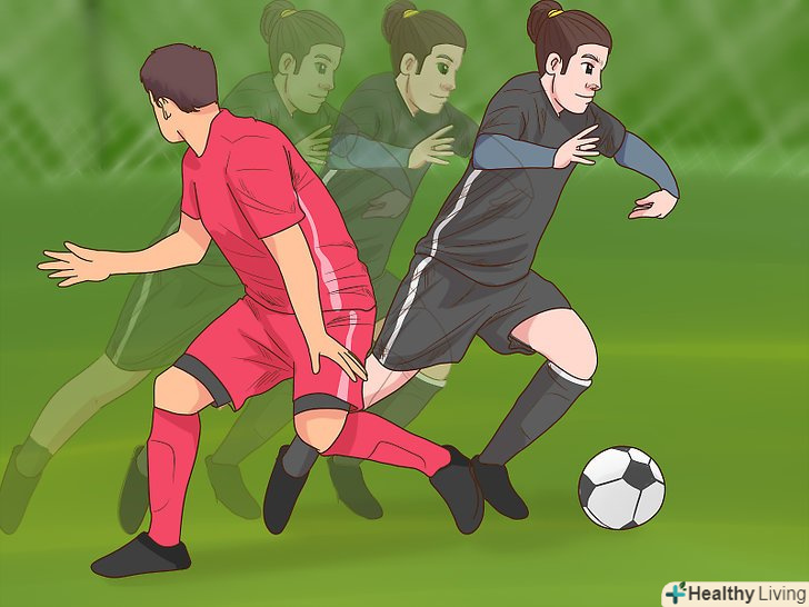 - В русі біжіть спочатку повільно, потім різко прокиньте м'яч і оббігти гравця на ривку.