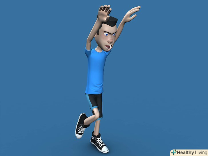 - Одночасно підніміть ваші руки вгору. Робіть все те, що ви зазвичай робите перед виконанням колеса, але для набору висоти.