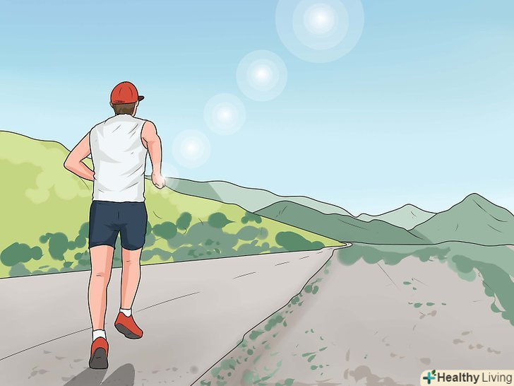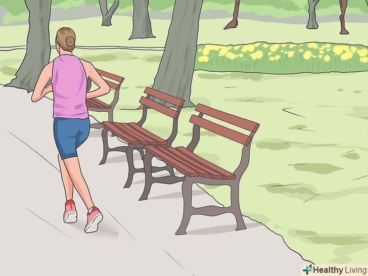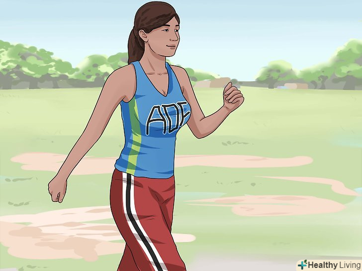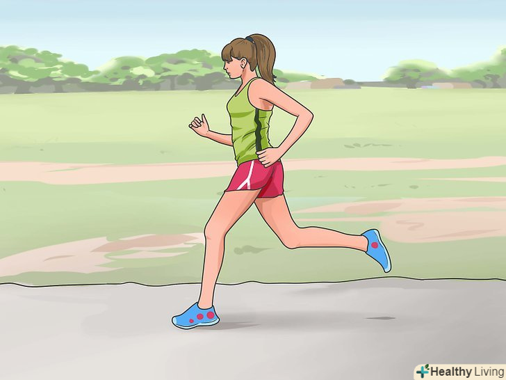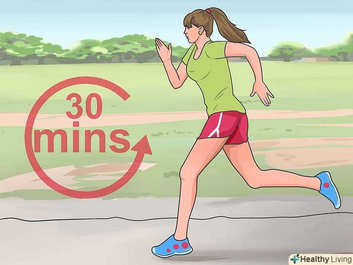Для початку бігайте протягом 30 хвилин. біжіть зі швидкістю 50-75% від вашої максимальної швидкості. Так ви повільніше витратите всі сили. Якщо вам потрібен відпочинок, перейдіть на повільний біг підтюпцем, але не зупиняйтеся.- Якщо ви живете неподалік від шкільного стадіону, спробуйте бігати по доріжці стадіону. Одне коло на стандартному шкільному стадіоні становить 200-300 метрів. Якщо ви ніколи раніше не займалися бігом, почніть з дистанції в 1 км.Якщо ж у вас є деяка підготовка, пробуйте бігати 3-4 км. При бажанні можна і більше.