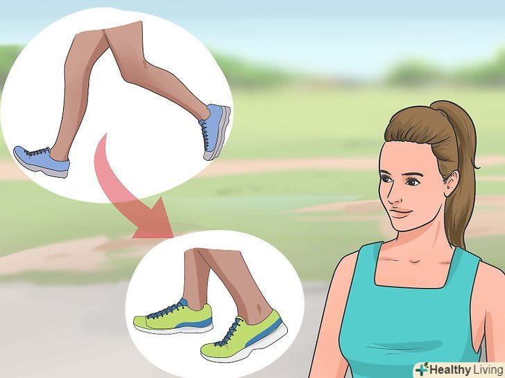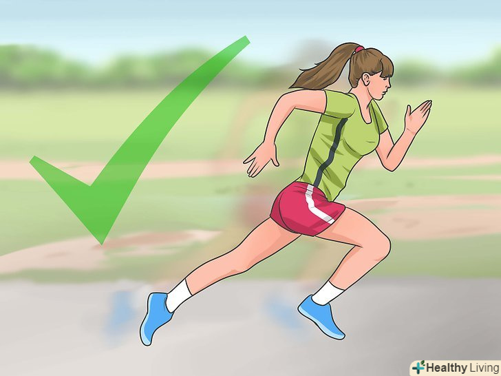 - Як правило, при швидкому бігу нога буде стосуватися землі в районі великого пальця ноги. [3] якщо приземлятися на п'яти, крок може бути занадто довгим.