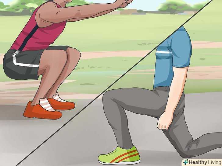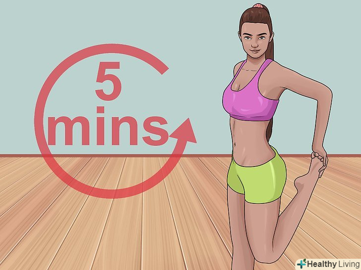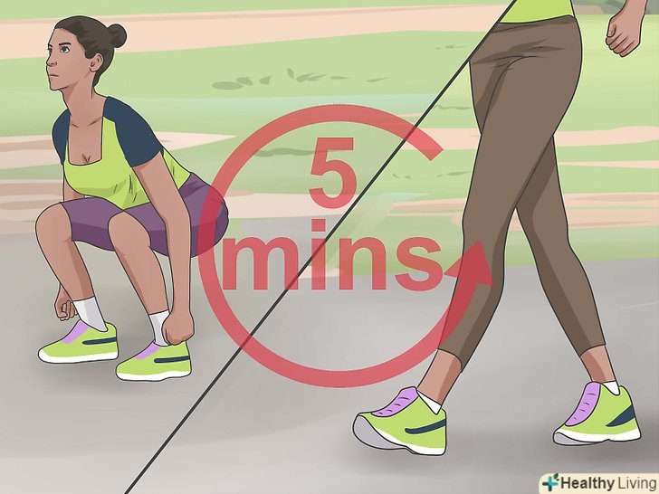 Робіть розминку перед пробіжкою протягом 5-10 хвилин. розминка повинна стати невід'ємною частиною кожного тренування, особливо якщо ви тільки починаєте бігати. Ваші м'язи ще не звикли до подібної навантаженні, тому без розминки не обійтися. Виконуйте динамічні вправи для розтяжки м'язів.- Що стосується статичних вправ для розтяжки, їх корисніше всього робити після тренування. [1]