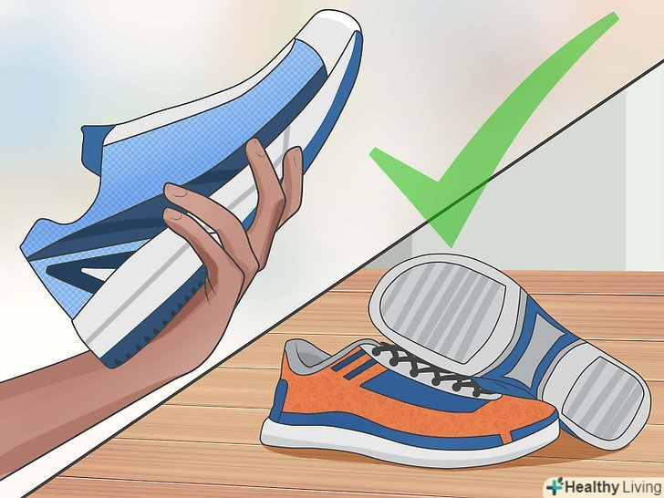 Підберіть кросівки відповідного розміру. кросівки повинні щільно охоплювати стопу, але при цьому ноги повинні відчувати себе вільно і не повинні натиратися. Якщо взуття вам тисне, під час бігу у вас на ногах можуть утворитися мозолі. Чим довше ви плануєте бігти, тим ретельніше варто підходити до вибору взуття.- Якщо ви бігаєте кожен день, ваших кросівок вистачить на 4-6 місяців. Якщо під час носіння кросівок у вас болять ноги, задумайтеся про покупку нової пари.