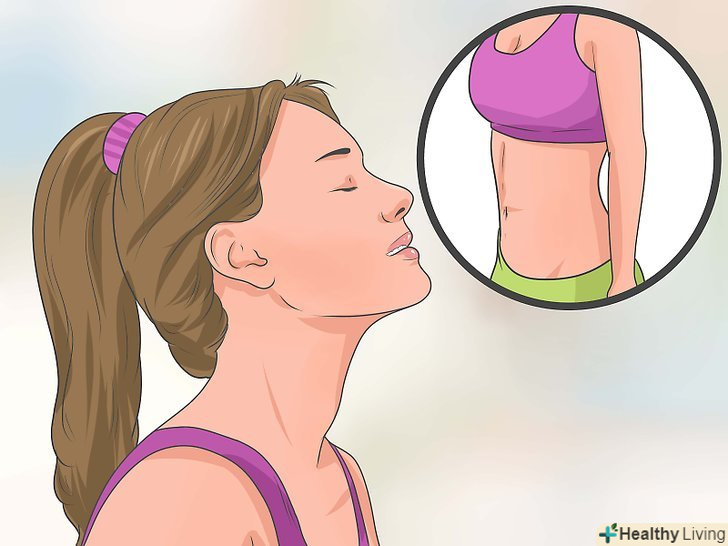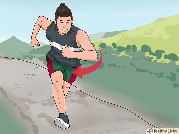 - Дихайте животом, а не грудьми. Роблячи вдихи, уявіть, що ви наповнюєте повітрям свій живіт. Так тіло отримає більше кисню, завдяки чому ваші м'язи будуть повільніше втомлюватися, і ви будете бігти довше. [2]