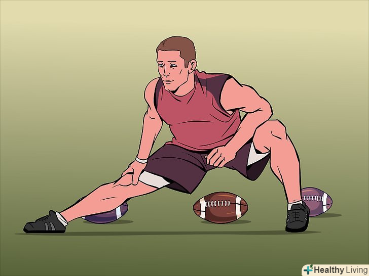 Розминка. дуже важливо зробити розминку перед фізичною активністю. Вона готує ваші м'язи до навантаження і збільшує циркуляцію крові. Таким чином, ви зменшуєте ризик отримати травму або розтягнення. [1]- Розтяжка. Акуратно і дбайливо потягніть м'язи в ту сторону, в яку рухаєте ними під час гри. Робіть нахили і присідання.