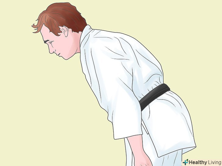 Не забувайте про належний етикет і манерах. етикет (карате-ка) - це те, як тримати рівновагу між силою карате і смиренністю. Радійте вашій зростаючій силі, але робіть це скромно. [2]- Заходячи в додзьо і виходячи з нього, завжди Кланяйтеся. Вклоніться вчителю. Скажіть спасибі.