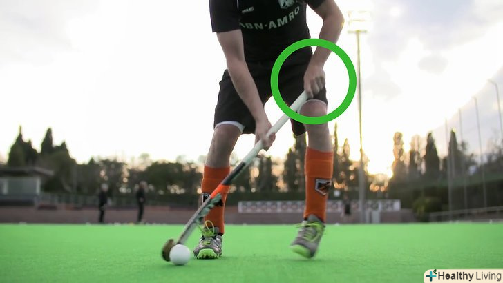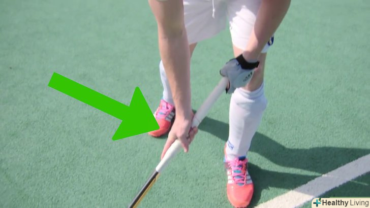 Прийміть стійку. ліва ступня дивиться вперед, права – забезпечує опору. Трохи зігніть коліна і прицільтеся по м'ячу, який повинен бути на одній лінії з з вашої лівої ступень або трохи позаду неї, але не попереду. Головне - не згинати спину, а тримати зігнутими коліна. Інакше на наступний день ви відчуєте сильний біль! Потренуйтеся ставити край плоскої сторони на землю в якості гальма. М'яч повинен знаходити на відстані ключки від вашого тіла.- Спіймайте м'яч. багато опускають ключки паралельно землі (щоб збільшити площу перешкоди), але з тренуваннями ви навчитеся просто забігати за м'яч. Щоб зупинити наближається до вас м'яч, відійдіть і сповільніть його перед тим, як зупиняти. Просто утримуючи ключку відкритою ви зробите так, що м'яч накотиться на ключку, а удар в протихід м'яча часто призводить до того, що він летить в абсолютно несподіваному напрямку. Дайте м'ячу пройти трохи поруч, і нахиліть ключку, щоб зловити його. Приймайте м'яч акуратно, уявіть, що це яйце, і робіть це з легкістю і обережністю.