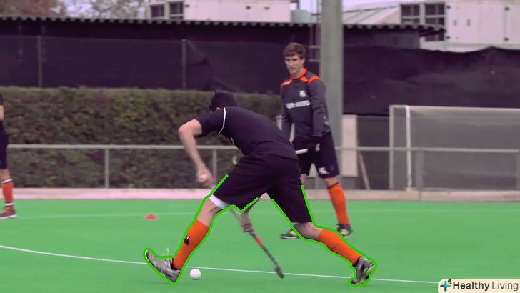 - Доведіть до досконалості техніку під назвою індійський дриблінг або "зворотна ключка". коли м'яч знаходиться зліва від вас, переверніть ключку лівою рукою, щоб вона була повернута прямою стороною вниз. Перевертаючи ключку, відпустіть праву руку, і як тільки ключка буде в потрібному положенні, знову візьміть її правою рукою. Ніколи не торкайтеся м'яча заокругленим кінцем ключки; завжди користуйтеся рівною стороною. Індійський дриблінг полягає в легких клацаннях по м'ячу для його переміщення вперед. Він прекрасно підходить для того, щоб утримувати м'яч при собі. Не здавайтеся! Навіть досвідченим гравцям буває важко виконувати індійський дриблінг.