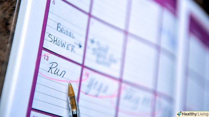 Складіть графік тренувань і дотримуйтесь йому. робіть довгі пробіжки по вихідних. Ви можете бігати повільно. Важливо, щоб ви покрили відстань незалежно від того, скільки часу це займе. Часто переходьте на ходьбу і робіть перерви, щоб попити. [3]