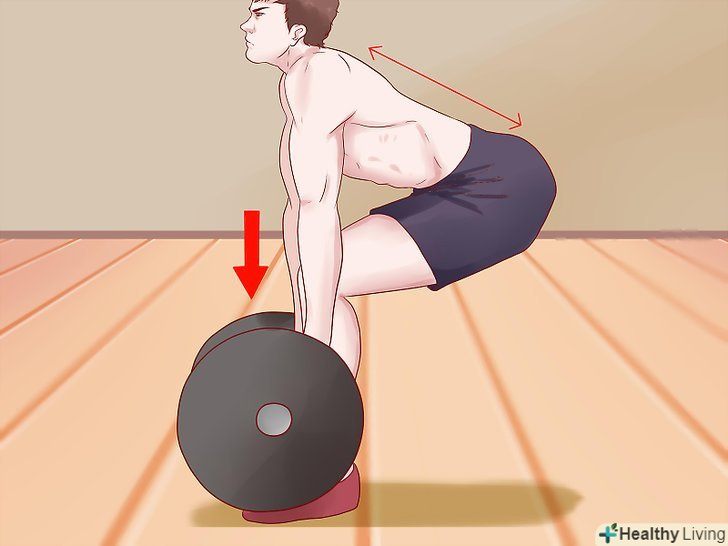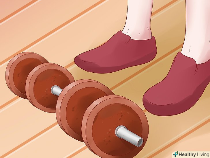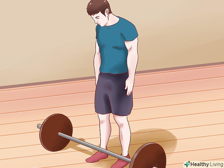 Готуємо штангу. розташуйте штангу на підлозі і навісьте млинці. Вага штанги повинен відповідати вашій силі і рівню фізичної підготовки. Якщо ви робите станову тягу вперше, візьміть вагу легше, адже завжди можна додати вагу. Ви ж хочете привести своє тіло в порядок, з'ясувати наскільки ви сильні чи ні.- Оптимальним буде почати з 2, 5 кг і поступово збільшувати вагу.