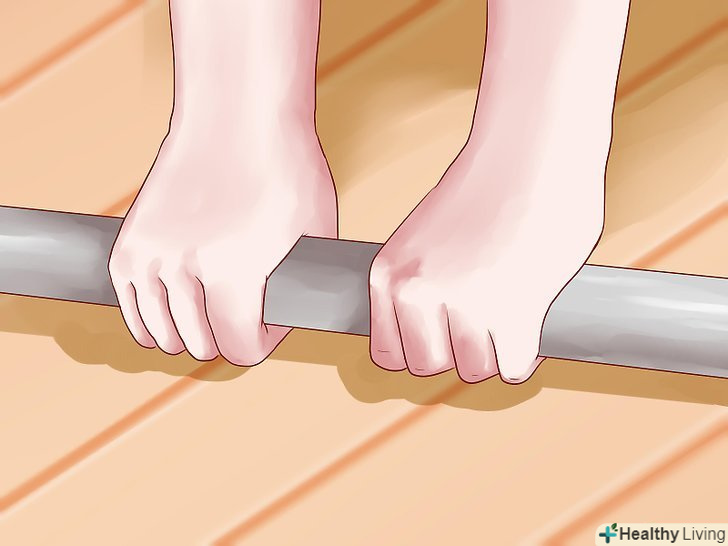 Займіть правильну стійку. Станьте перед штангою так, щоб ноги були розставлені на ширині плечей, ступні повинні бути під штангою, а шкарпетки прямо або трохи нарізно. Стійка ноги нарізно дасть вам велику стійкість.
